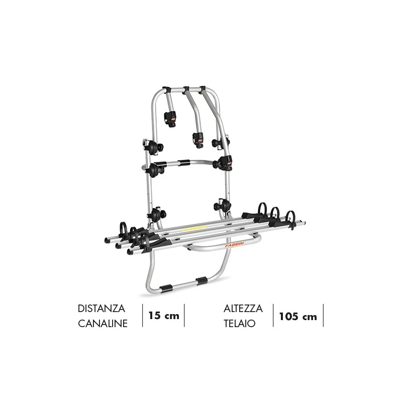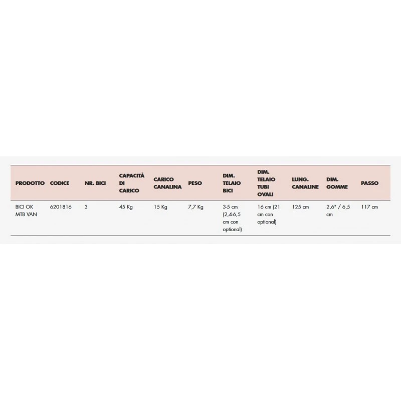 - bloccaggio bici tramite bracci in alluminio rotanti a 360° con protezione in gomma; adattabili a tubi da 2,4 a 6,5 cm