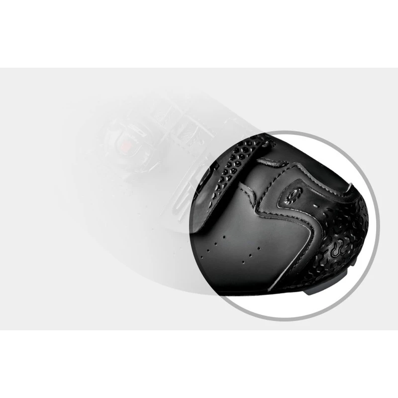 SOFT INSTEP CLOSURE SYSTEM è un cinturino posizionato sul collo del piede, sagomato, morbido e anatomico accoppiato con un materiale soffice per maggior comfort. Distribuisce la pressione in modo omogeneo sul collo del piede e si regola su entrambi i lati per avere una posizione perfettamente centrata del cinturino a seconda che il collo del piede sia basso o alto. Il sistema elimina la necessità di usare un distanziale. SOFT INSTEP CLOSURE SYSTEM è sostituibile..